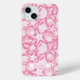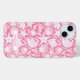 Customize this pink shell pattern iPhone 15 plus case with your your name in a trendy modern CAP font in pink on white. It's so modern and beachy!