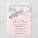 She's On Cloud Nine Baby Shower Invitation. Celebrate the mum to be with this dreamy and whimsical design, perfect for a celestial and pastel themed baby shower. The top features soft pink and blue watercolor clouds accented by delicate gold stars, creating an ethereal and magical feel.