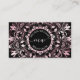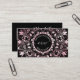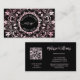 A pink shiny metallic intricate floral mandala with a logo and your initials, name and profession on a black background. At the backside is a scannable qr code for your website. Perfect for salon, hair-and makeup, beauty, yoga teacher, boutique or any female entrepreneur.
