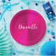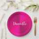 Pink shiny faux metal custom name paper plate