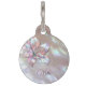 Holographi metallic flower on a mother of pearl background. Customise it with your pet's name, your name, address and phone number.