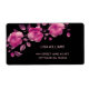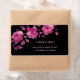 This elegant floral business card features delicate hot pink blossoms on a black background.