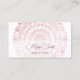 A pink metallic intricate floral mandala on a white background. The bottom portion features a white text field with an elegant classic handwritten script. At the backside is a scannable qr code for your website. Perfect for salon, hair-and makeup, beauty, yoga teacher, boutique or any female entrepreneur.