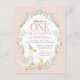 Pink Silly Goose Floral Gingham First Birthday Postcard