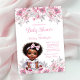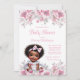 Celebrate the upcoming arrival with our adorable baby shower invitation, featuring an adorable African American baby girl. She has a sweet and expression, and she's dressed in a pretty pink and white dress with a matching hair bow and shoes on a pretty watercolor floral background. Perfectly designed to capture the essence of a joyous occasion, this invitation is ideal for any girl baby shower. Customise with ease and make your special day even more memorable. Simply add your event details in the font style, wording and font colour of your choice. You can also change the background colour on the back.
