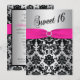 Pink, Silver, and Black Damask Sweet 16 Invitation