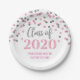 Pink Silver Confetti Graduation 2020 Paper Plate