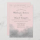 An elegant pink and silver wedding invitation featuring silver confetti dust at the top and blingy silver accent at the bottom.