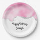 Pink & Silver Faux Glitter Border Stylish Birthday Paper Plate