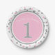 Pink Silver Faux Glitter Confetti 1st Birthday Paper Plate