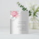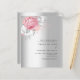A faux silver looking background. Decorated with a pink and white roses. Personalise and add your names and wedding details.