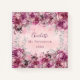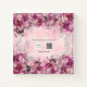 A blush, pale pink metallic looking background. Decorated with pink and purple florals, flowers with faux silver foliage. Personalise and add a name. The name is written with a modern hand lettered style script