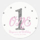 Pink & Silver Girls ONE 1st Birthday Party Favour Classic Round Sticker