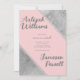 Elegant gray bold script calligraphy with trendy stylish blush pink and silver glitter geometric wedding invitations.