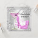 Pink & Silver Bachelorette Party Invitation. Pretty sparkle heels & snowflakes with pink cocktail. Please note: All flat images! they do not have real jewels.