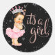 Pink Silver It's a Girl Princess Girl Baby Shower Classic Round Sticker