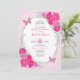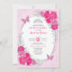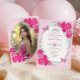 Pink Silver Quinceañera Flower 15th Birthday Photo Invitation