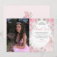 Thank your guests for coming to your quinceañera with these elegant thank you cards. The design features a sparkly blush glitter dress adorned with elegant watercolor pink roses and soft greenery. Click the "customise further" button if you wish to re-arrange and format the style and placement of the text.