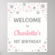Pink Silver Snowflake Winter 1st Birthday Welcome Poster