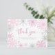Pink silver snowflakes baby shower thank you Card