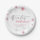 Pink Silver Winter Snowflakes 1st Birthday Paper Plate