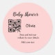 Pink simple baby shower q r code add name text thr classic round sticker