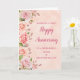 Happy wedding anniversary card for sister and brother in law with elegant pink watercolor roses and spring greenery, with a faux rose gold pattern.