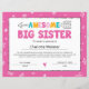 #big sister certificate