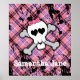 Black and pink design features a skull and crossbones with a pink bow high on top of the head, and hearts for the eye sockets. Perfect for the teen or pre-teen girl who is into grunge emo or monster zombie stuff. Funky hot pink plaid background with black paint splatters. Customise it with your own name or text for that added special touch. Design Copyright © cutecomfy.