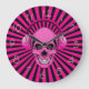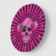 Funky pink and black clock with numbers and a pink grinning skull with headphones - www.vectorportal.com - A cool and original gift for teenage girls and Goths.