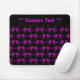 Black mousepad with hot pink skull and crossbones design. Lettering can be customized on the product page with any combination of letters, numerals or text symbols.