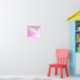 Poster with a beautiful background. A pink pastel sky with fluffy clouds and a lemon coloured rainbow. Magical and whimsical design.