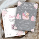 Pink Sleigh Cute Teddy Bear Grey Baby Shower Invitation