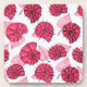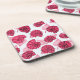 Pink snails coaster with a pattern created from an ink drawing of abstract snail shells with decorative white dots in from of leaves.