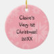 Baby's 1st Christmas customisable keepsake ornament with a sleeping baby girl in a pink sleeper and soft snowflake design. You can easily customise this ornament with baby's photo and add your own text to the back. It's great as a 1st Christmas gift and will be a memento for years to come.