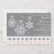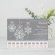 A pretty snowflake mobile hangs above a baby crib on these pink, grey, silver and white snowflake and winter wonderland themed baby shower invitations for a girl. Artwork © Chrissy H. Studios, LLC. All Rights Reserved.
