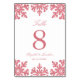 Pink snowflake winter wedding table number cards