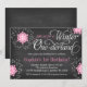 Pink Snowflakes Chalkboard Winter Onederland Invitation