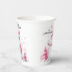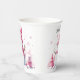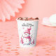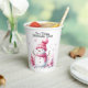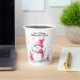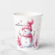 If you appreciate a pink holiday design you'll love this pink snowman made of marshmallows adorned in pink hat and scarf with twig arms. Random pink snowflakes fluttering down around him with pink marshmallows beside him along with a pink Christmas tree. The message says 'It's a wintery marshmallow world' that can be changed to your liking. A fun paper cup to use at your holiday gatherings.