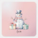 Pink Snowman with Packages Button Square Sticker