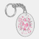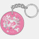 This fun girl's soccer themed keychain features an "explosion" of pink & white soccer balls of varying sizes and grey & pink star shapes - the pink star has a tiny pattern of white polka dots - customise with the athlete's name & jersey number, front & back - the white & pink background colours (front & back) are customisable - by katz_d_zynes