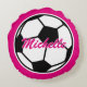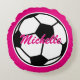 Round Pink soccer ball throw pillow for girls bedroom. Sports theme home decor for children's room or girly baby nursery. Custom background colour i.e. neon pink. Cute Birthday gift idea for girlie girls who love to play soccer football, fusball. Also fun for coach. Personalise for grandchild, daughter, granddaughter, baby girl, infant, mum etc. Double sided design.