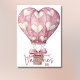 The card shows a powder-pink Happy Valentine’s Day lettering, and on the front floats a pink hot-air balloon decorated with tiny white hearts. The look stays classic and simple with a minimalist attitude that gives chic and timeless charm. It suits a partner, a close friend or family when you want to send affection in a modern and lightly luxury way.