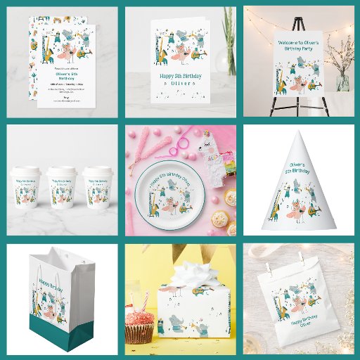 Pink Songbird with Animal Band Invitation