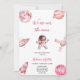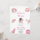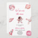virtual baby shower invitation features white background with faux gold glitter stars and fluffy pink clouds. The reverse side features faux gold glitter star patterns on blush pink background. Change the background colour and personalise for your needs.