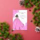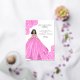 Pink quinceanera fashion illustration invitation card for quince parties. Pink Spanish quinceanera invite with gold foil. Add your information to this simple and elegant invitation. An ideal invitation that will match the pink dress of the quinceanera.