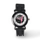 Any girl who loves ballet will love this watch! It features a pink silhouette ballerina at the centre. Above the figure is a spray of silver stardust. The images are placed on a dramatic black background. Numbers placed on a white outer circle make the watch easy to read.