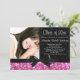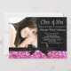 Pink Sparkle-look with black Bow Photo Graduation invitation, with a vertical orientation.