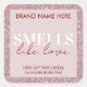 "Add a touch of sparkle to your Valentine’s Day gift with this Pink Sparkling Custom Candle Label. Designed in soft blush tones with shimmering accents, this label turns any candle into a charming keepsake. Featuring the playful phrase “Smells Like Love,” it’s perfect for celebrating someone special or adding a festive touch to your own space. Personalize the name, date, or message to make it uniquely yours. Great for gifts, décor, or party favors!"