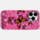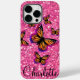 Fun party vibe, pink sparkling glitter Case-Mate iPhone 14 Pro Max Case with original artwork Monarch butterflies - text font is customisable and design is transferable-